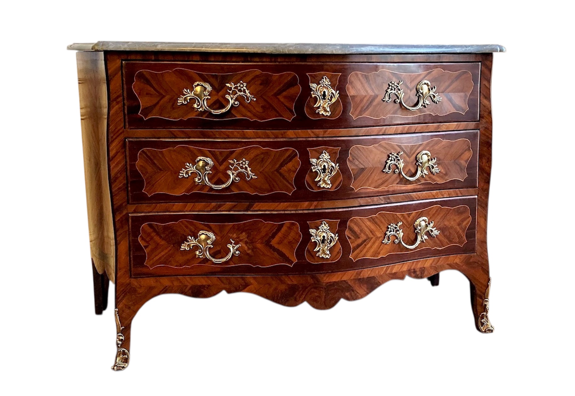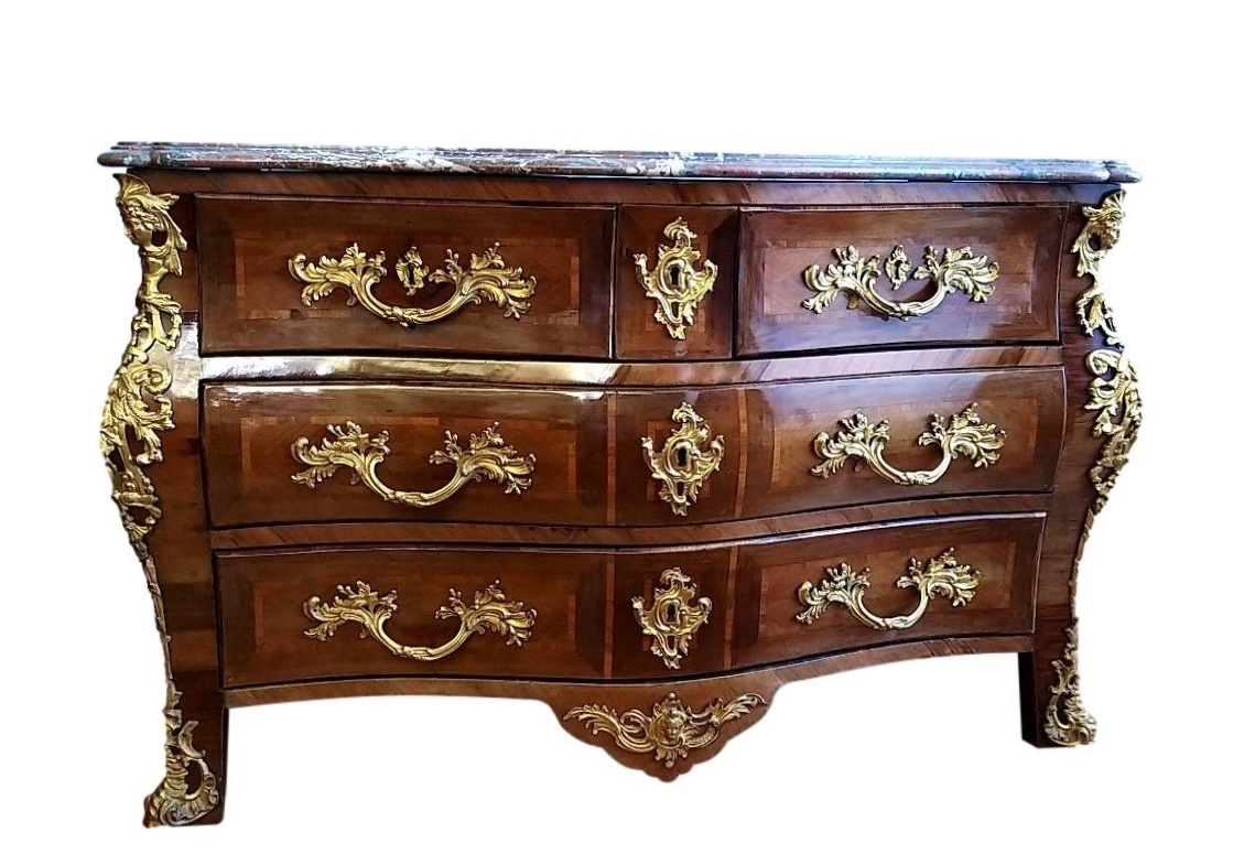 Commode galbée et marqueterie de l'époque Louis XV