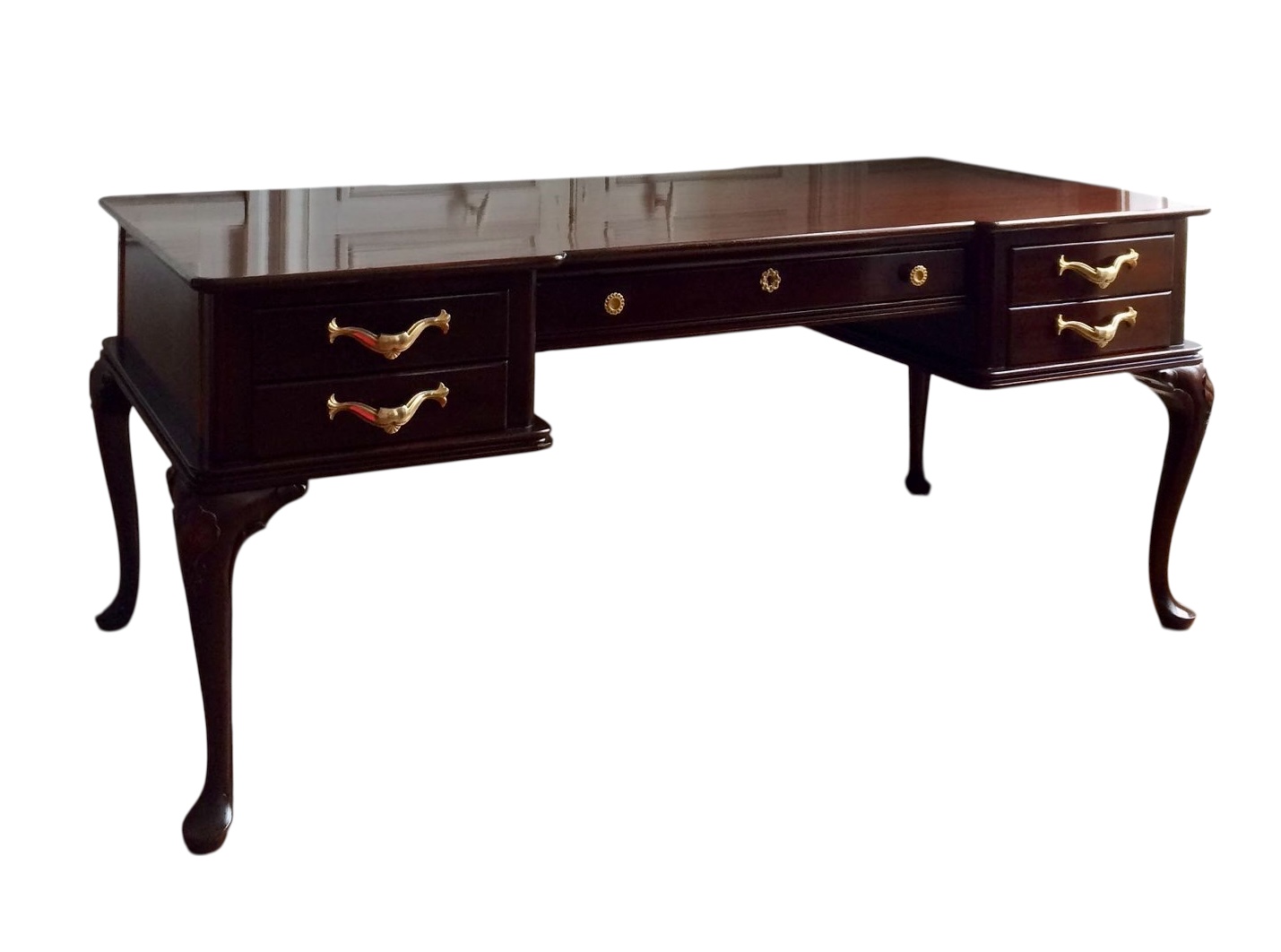 Scriban hollandais en marqueterie, XVIIIᵉ siècle. H. 106 cm – L. 119 cm – P. 57 cm (85 cm ouverte). Bois marqueté, bronze doré.